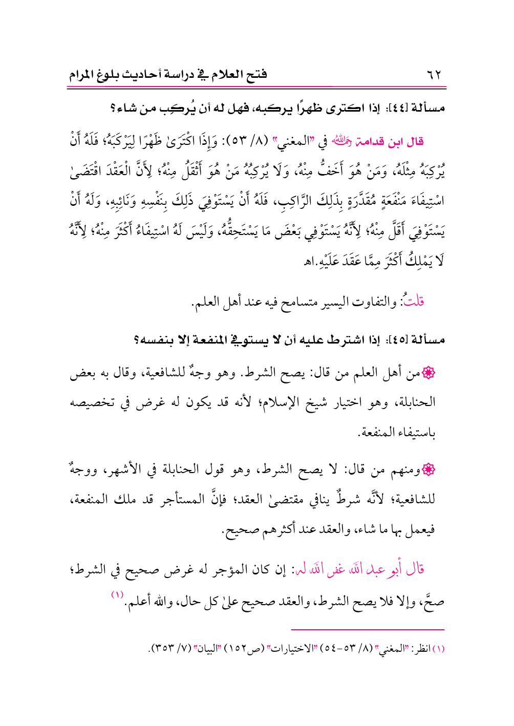 (¬١) انظر: «المغني» (٨/ ٥٣ - ٥٤) «الاختيارات» (ص ١٥٢) «البيان» (٧/ ٣٥٣).