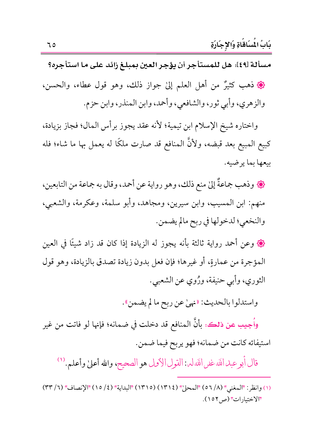 مسألة [٤٩]: هل للمستأجر أن يؤجر العين بمبلغ زائد على ما استأجره؟