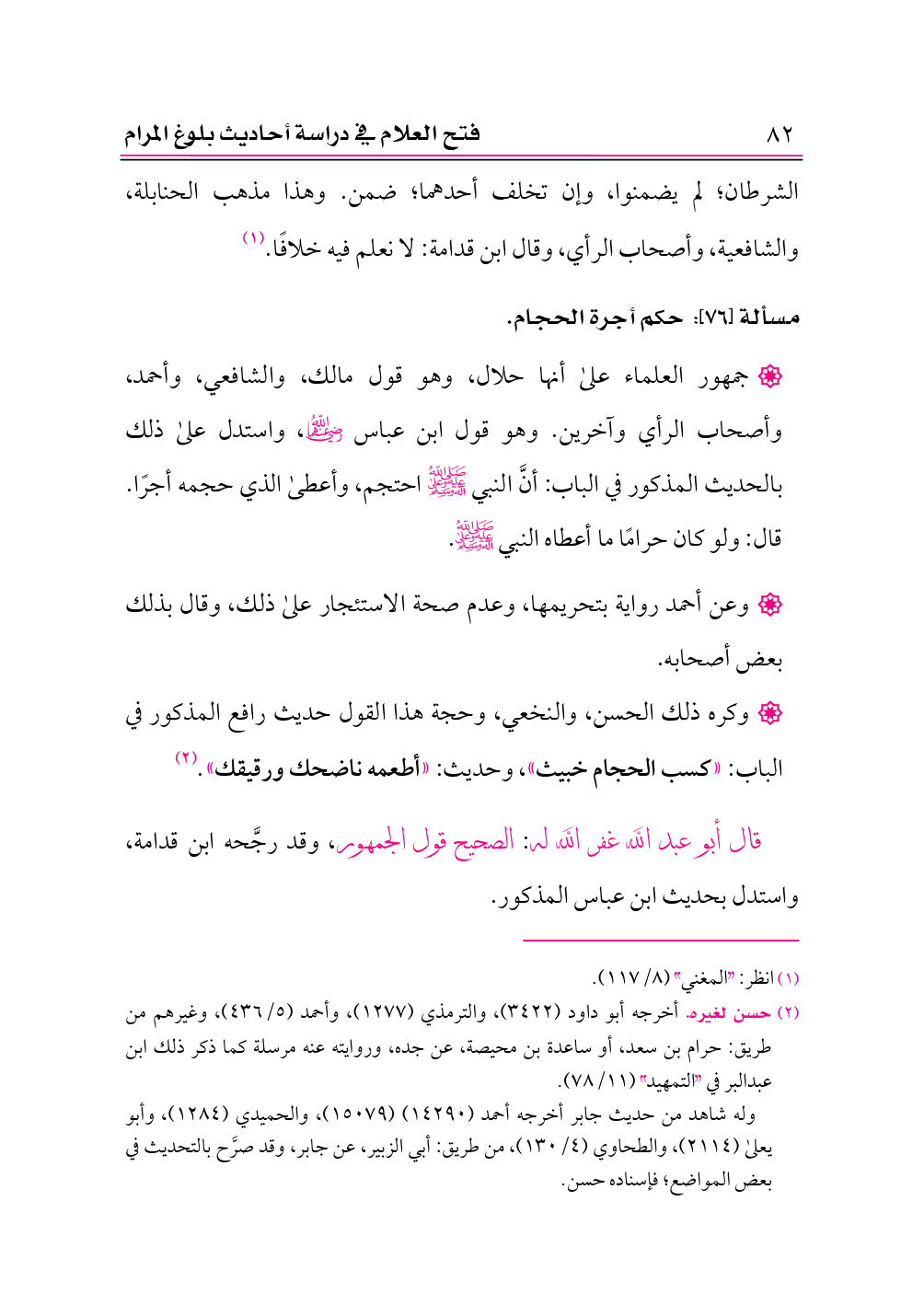 مسألة [٧٦]: حكم أجرة الحجام.
