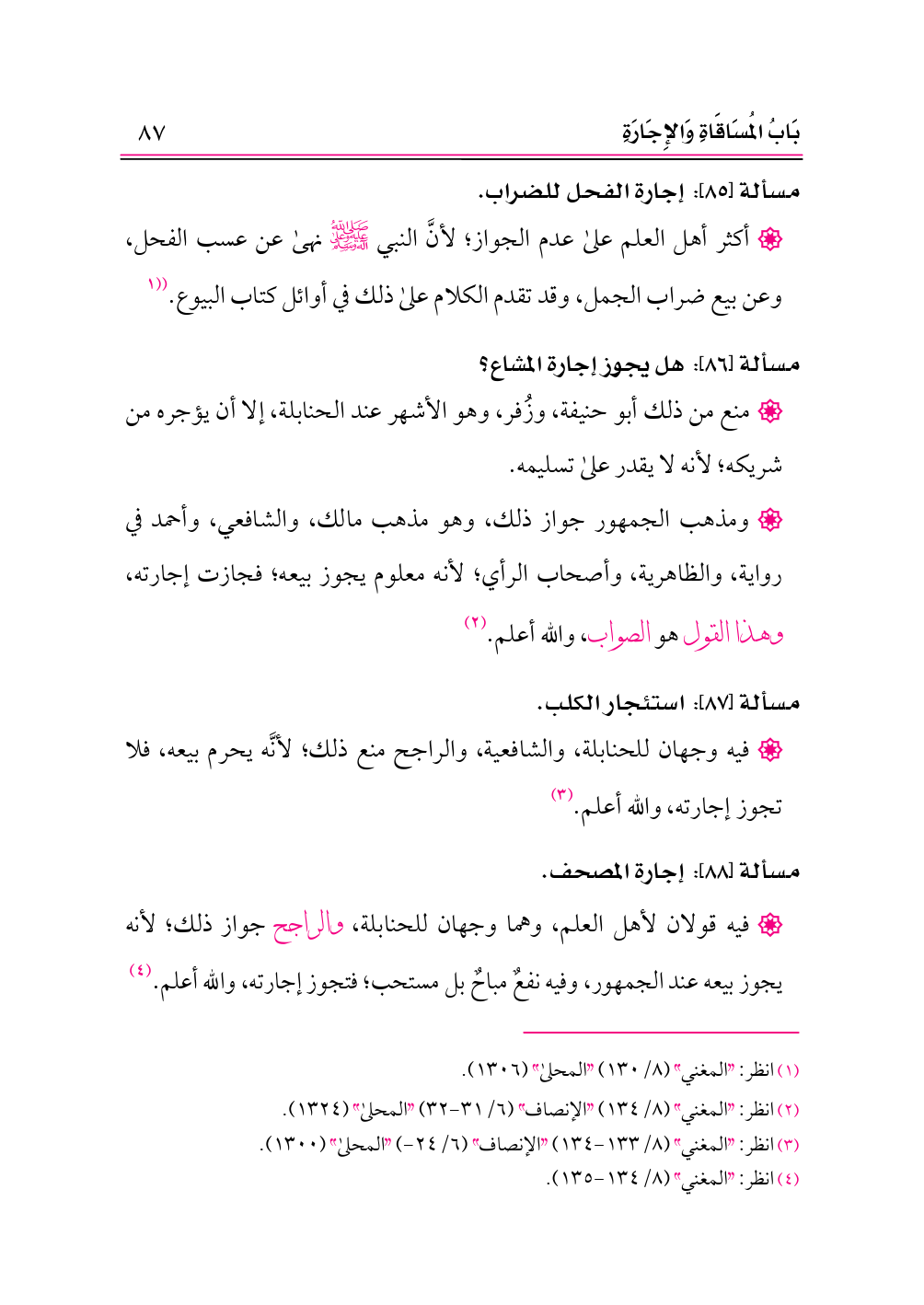 مسألة [٨٥]: إجارة الفحل للضراب.