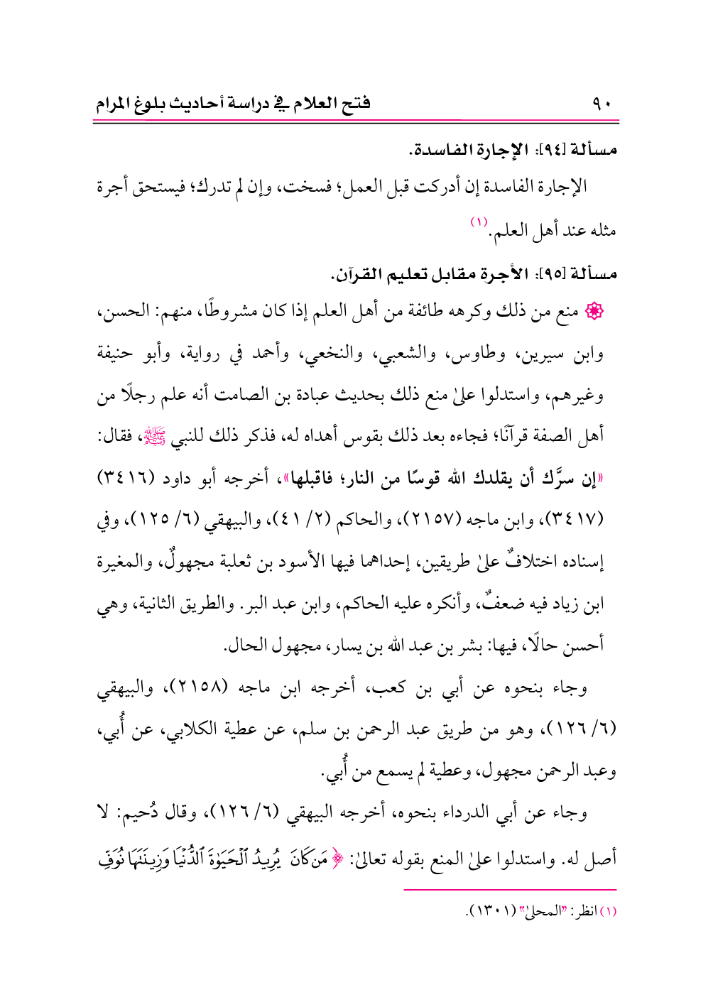مسألة [٩٥]: الأجرة مقابل تعليم القرآن.