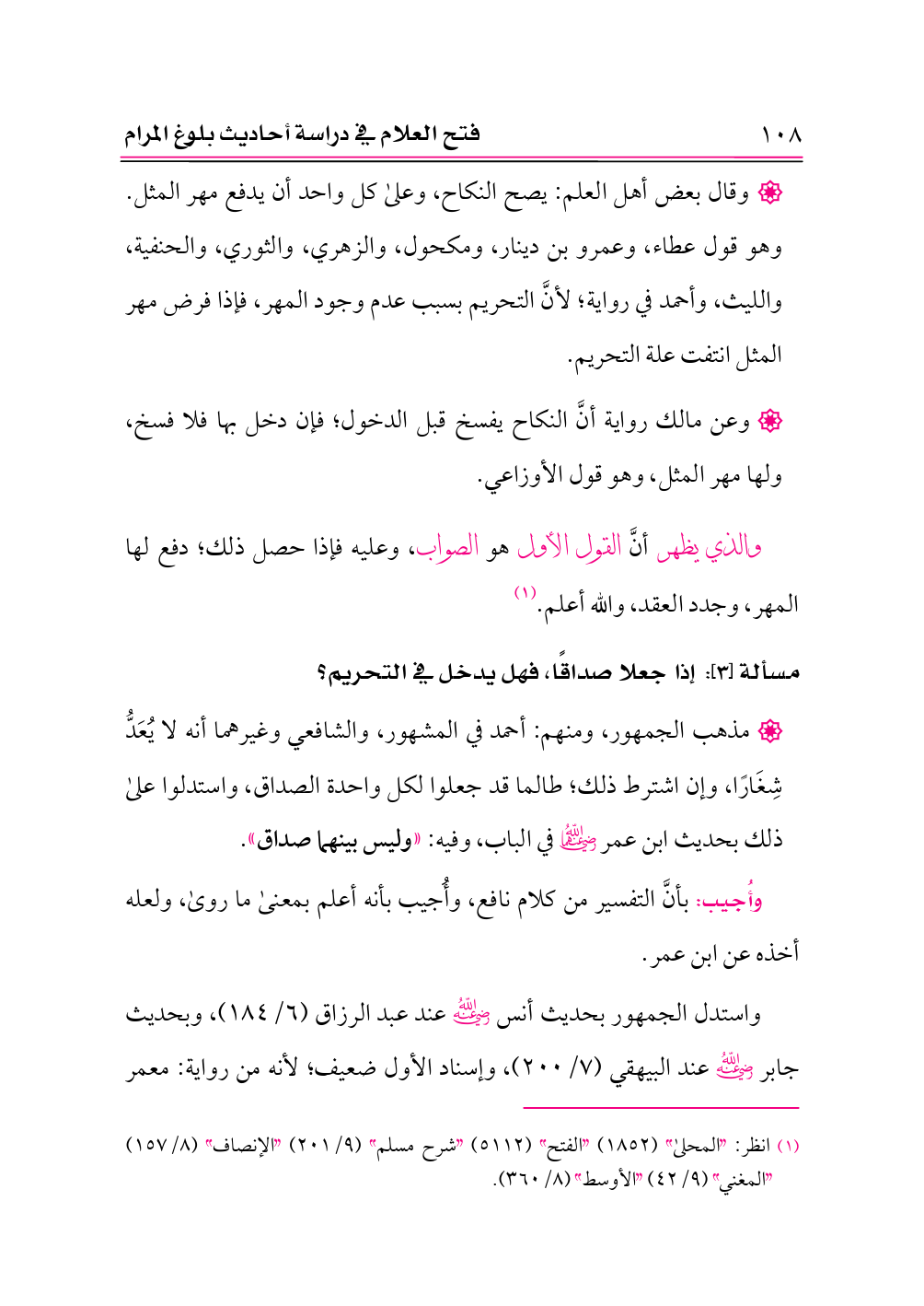 كتاب فتح العلام في دراسة أحاديث بلوغ المرام ط 4 (اسم الجزء: 8)