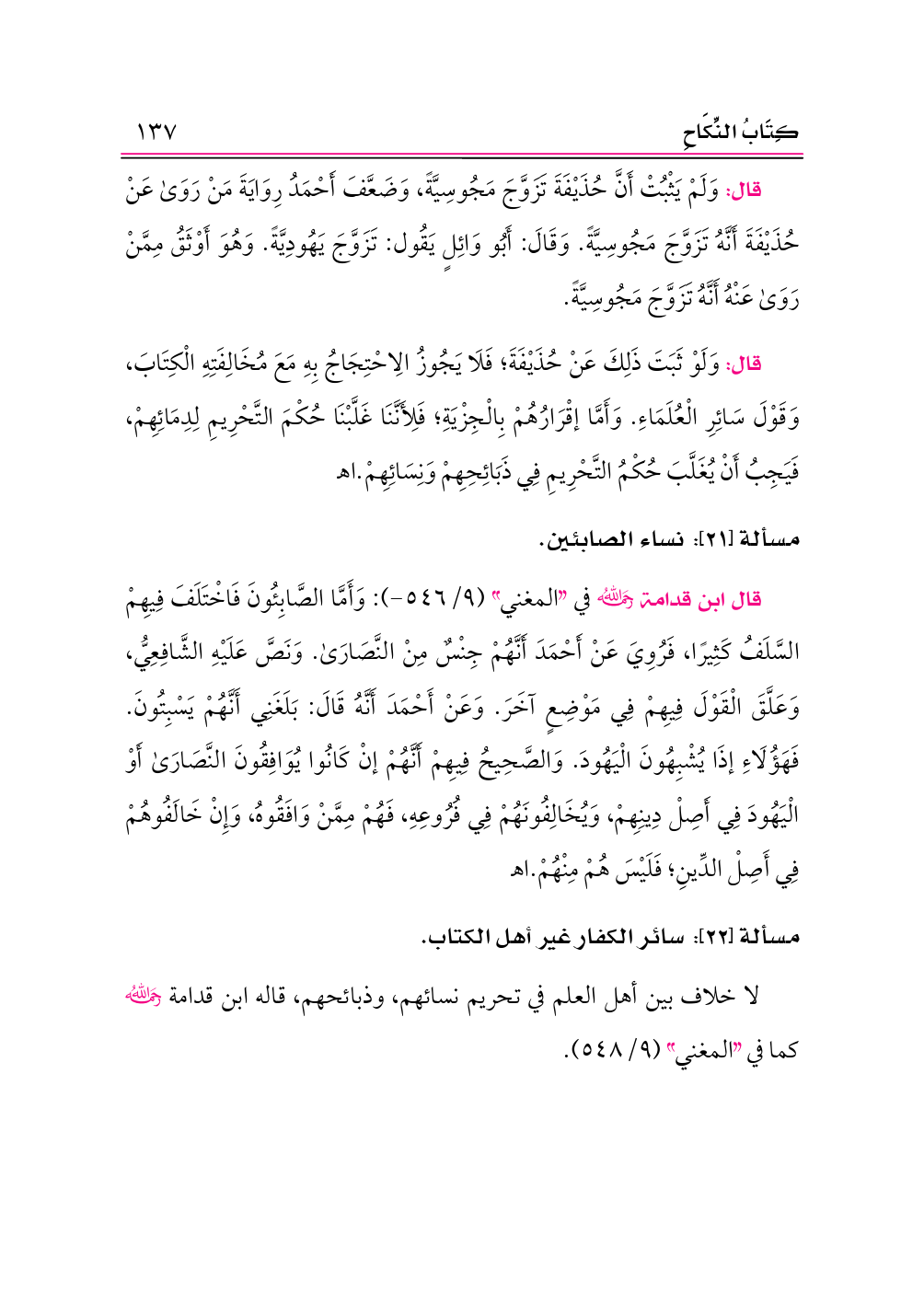 مسألة [٢١]: نساء الصابئين.
