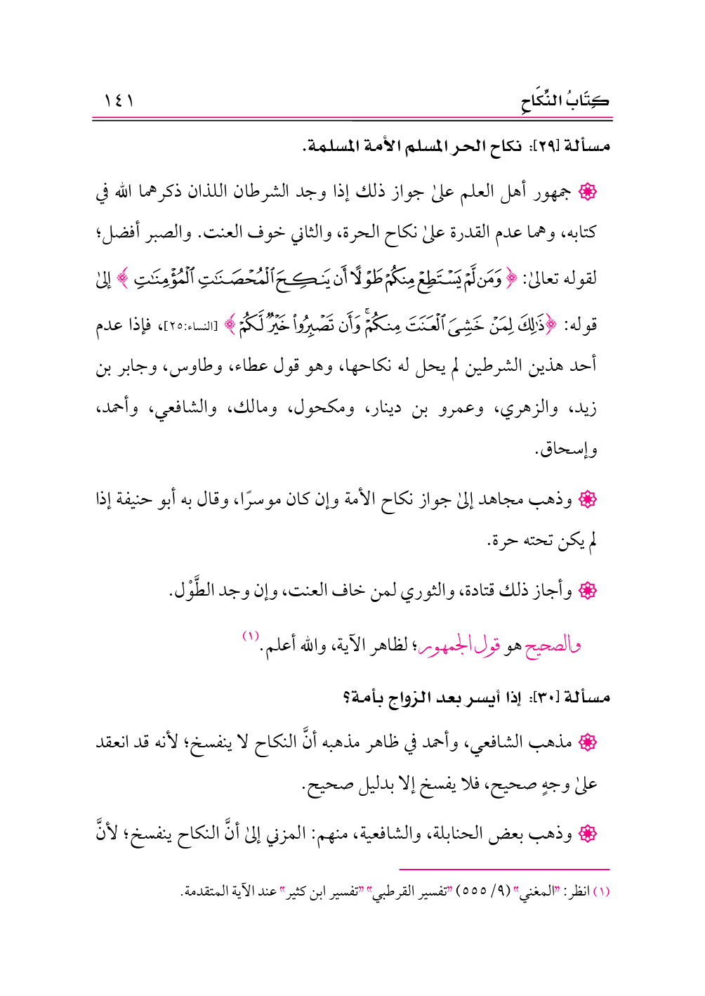 مسألة [٢٩]: نكاح الحر المسلم الأمة المسلمة.
