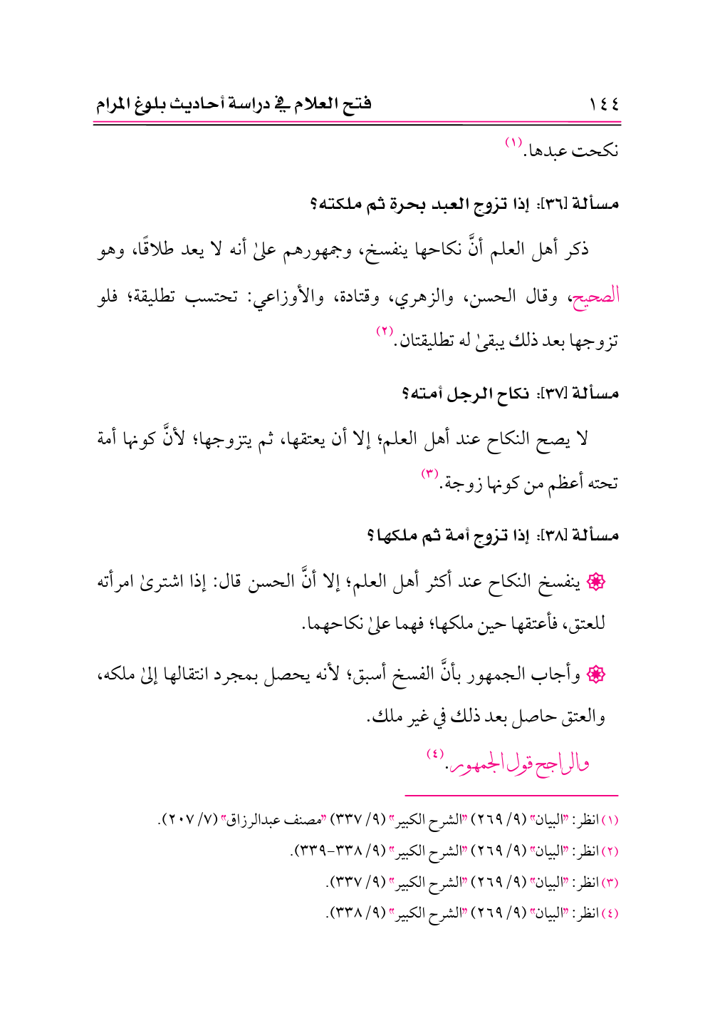 (¬١) انظر: «البيان» (٩/ ٢٦٩) «الشرح الكبير» (٩/ ٣٣٧) «مصنف عبدالرزاق» (٧/ ٢٠٧).