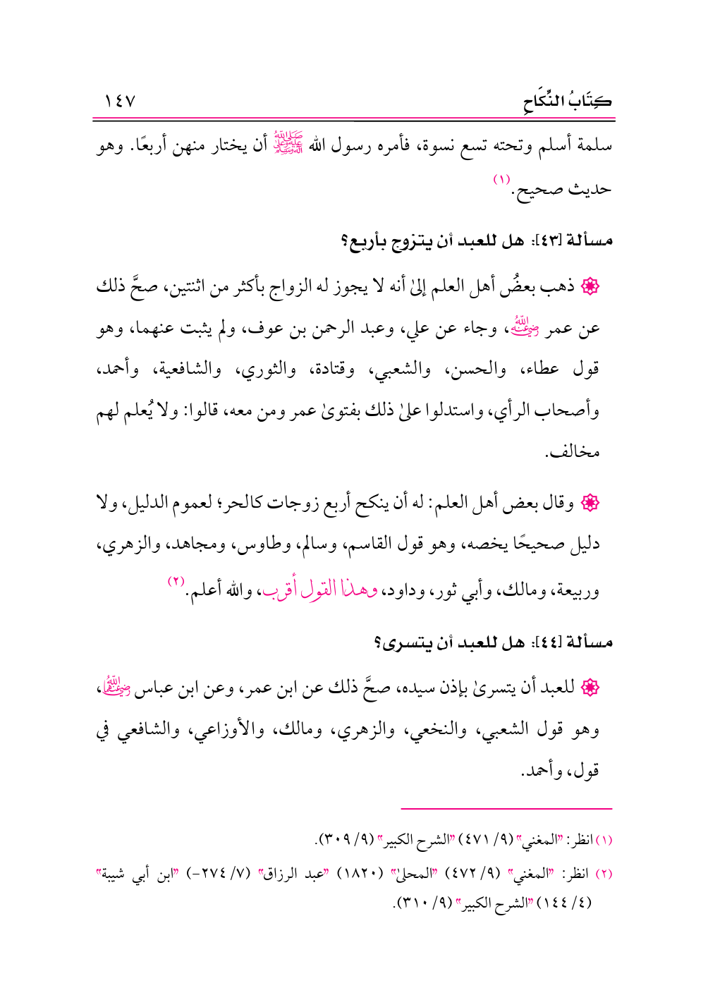 مسألة [٤٣]: هل للعبد أن يتزوج بأربع؟