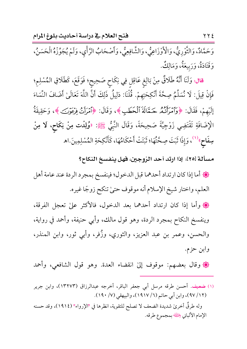 مسألة [٢٥]: إذا ارتد أحد الزوجين، فهل ينفسخ النكاح؟