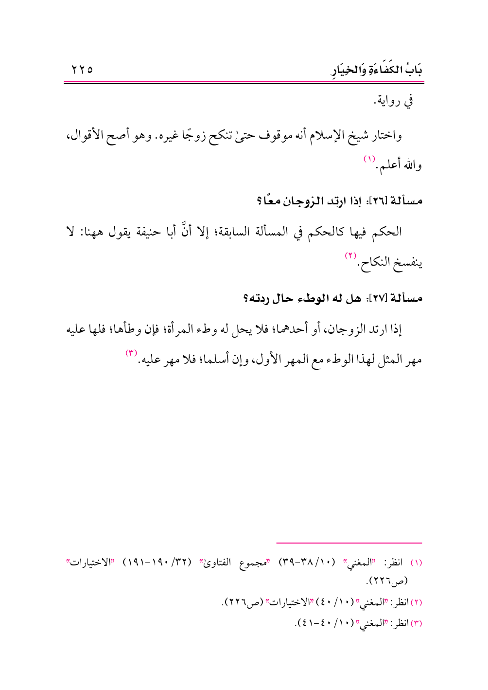 (¬١) انظر: «المغني» (١٠/ ٣٨ - ٣٩) «مجموع الفتاوى» (٣٢/ ١٩٠ - ١٩١) «الاختيارات» (ص ٢٢٦).