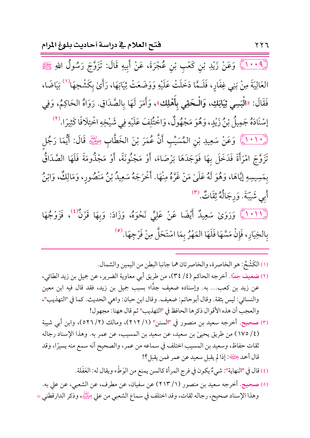 ١٠١١ - وَرَوَى سَعِيدٌ أَيْضًا عَنْ عَلِيٍّ نَحْوَهُ، وَزَادَ: وَبِهَا قَرْنٌ (¬٤)، فَزَوْجُهَا بِالخِيَارِ، فَإِنْ مَسَّهَا فَلَهَا المَهْرُ بِمَا اسْتَحَلَّ مِنْ فَرْجِهَا. (¬٥)