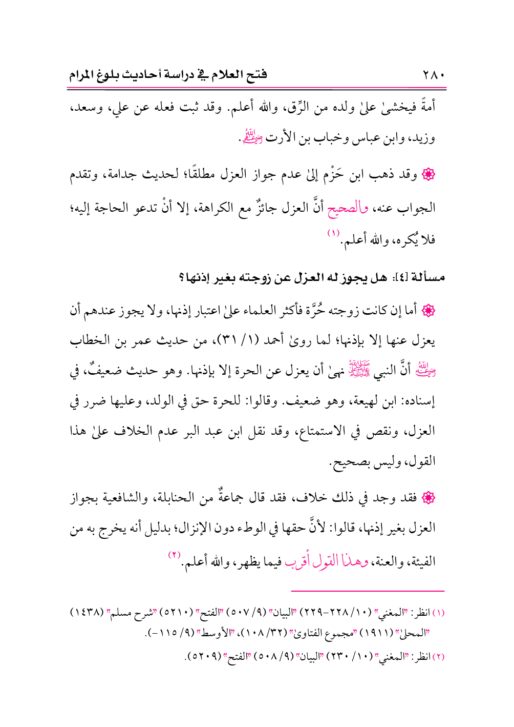 (¬١) انظر: «المغني» (١٠/ ٢٢٨ - ٢٢٩) «البيان» (٩/ ٥٠٧) «الفتح» (٥٢١٠) «شرح مسلم» (١٤٣٨) «المحلى» (١٩١١) «مجموع الفتاوى» (٣٢/ ١٠٨)، «الأوسط» (٩/ ١١٥ - ).