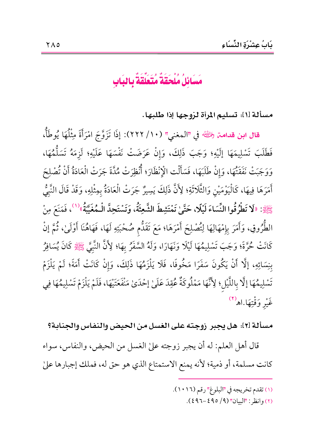 مَسَائِلُ مُلْحَقَةٌ مُتَعَلِّقَةٌ بِالبَابِ