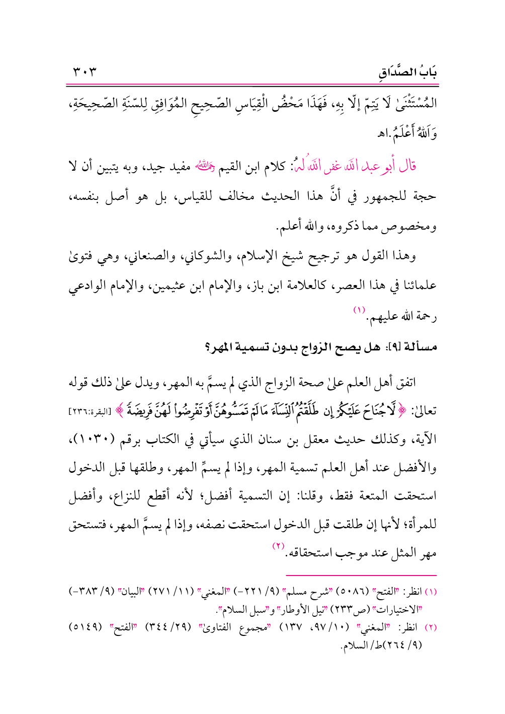 (¬١) انظر: «الفتح» (٥٠٨٦) «شرح مسلم» (٩/ ٢٢١ - ) «المغني» (١١/ ٢٧١) «البيان» (٩/ ٣٨٣ - ) «الاختيارات» (ص ٢٣٣) «نيل الأوطار» و «سبل السلام».