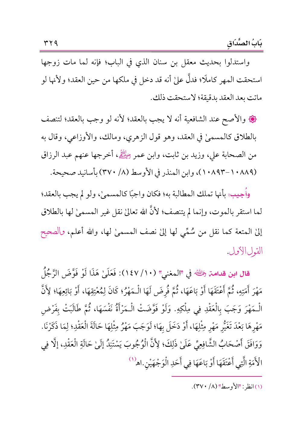 واستدلوا بحديث معقل بن سنان الذي في الباب؛ فإنه لما مات زوجها استحقت المهر كاملًا؛ فدلَّ على أنه قد دخل في ملكها من حين العقد؛ ولأنها لو ماتت بعد العقد بدقيقة؛ لاستحقت ذلك.