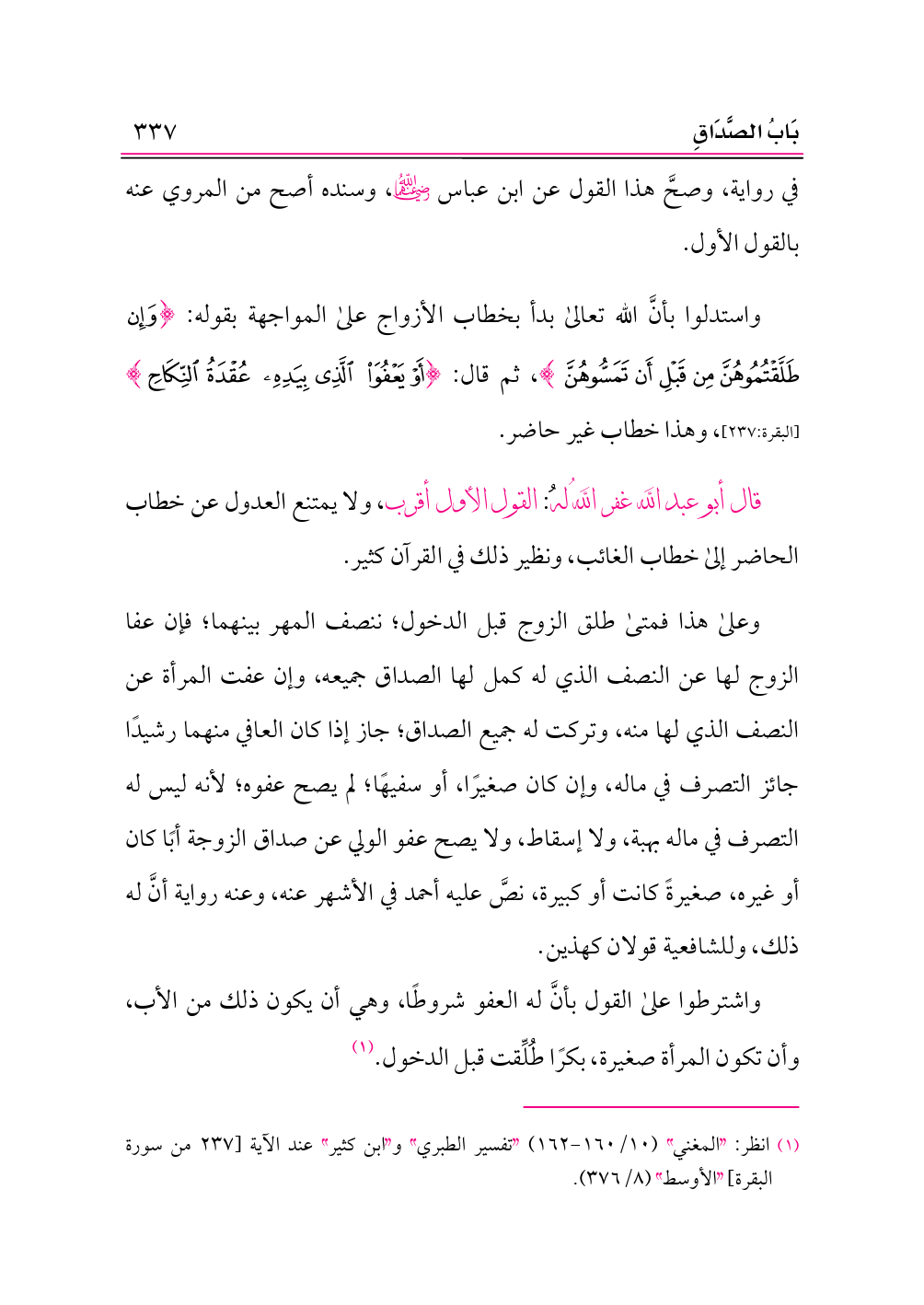 (¬١) انظر: «المغني» (١٠/ ١٦٠ - ١٦٢) «تفسير الطبري» و «ابن كثير» عند الآية [٢٣٧ من سورة البقرة] «الأوسط» (٨/ ٣٧٦).