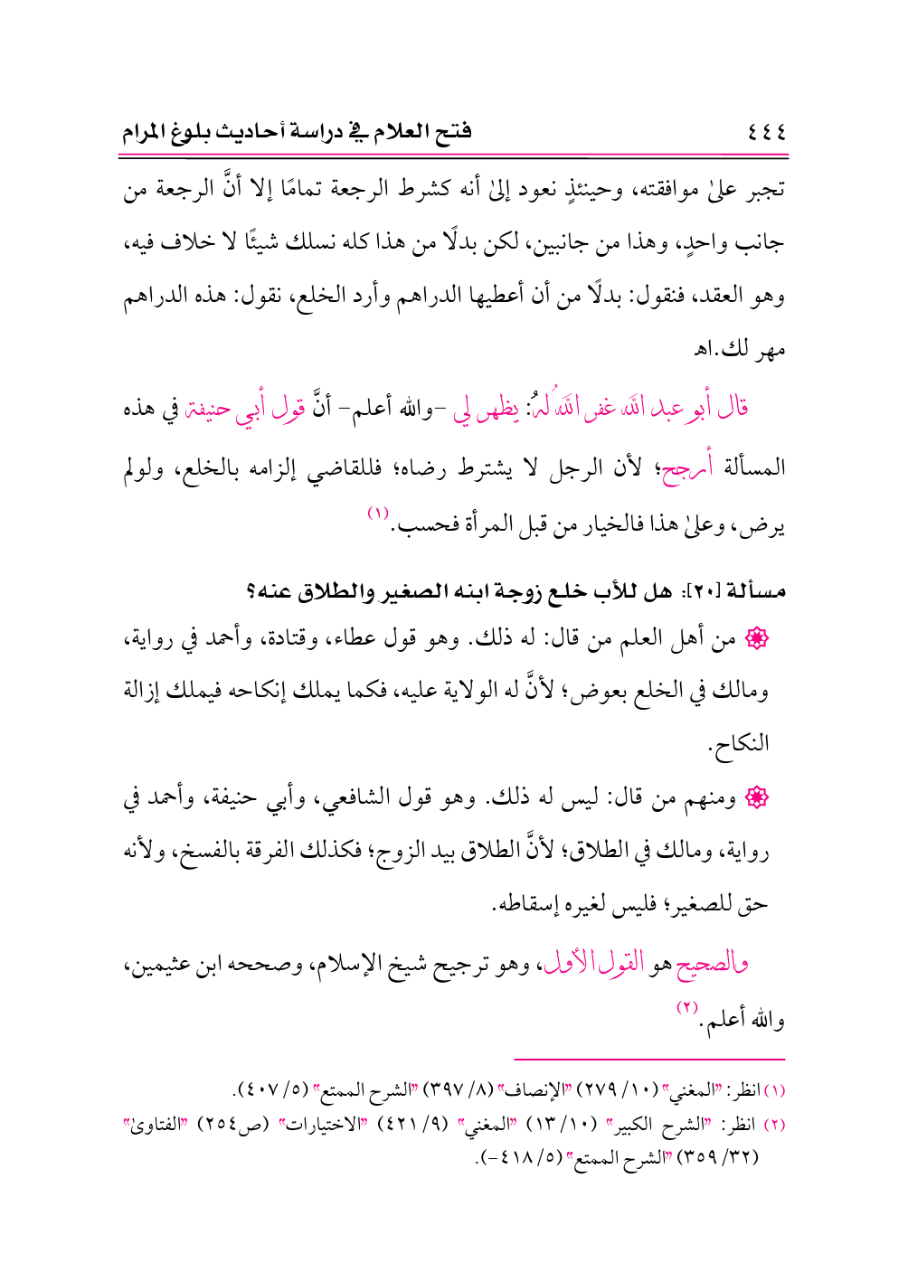 (¬١) انظر: «المغني» (١٠/ ٢٧٩) «الإنصاف» (٨/ ٣٩٧) «الشرح الممتع» (٥/ ٤٠٧).