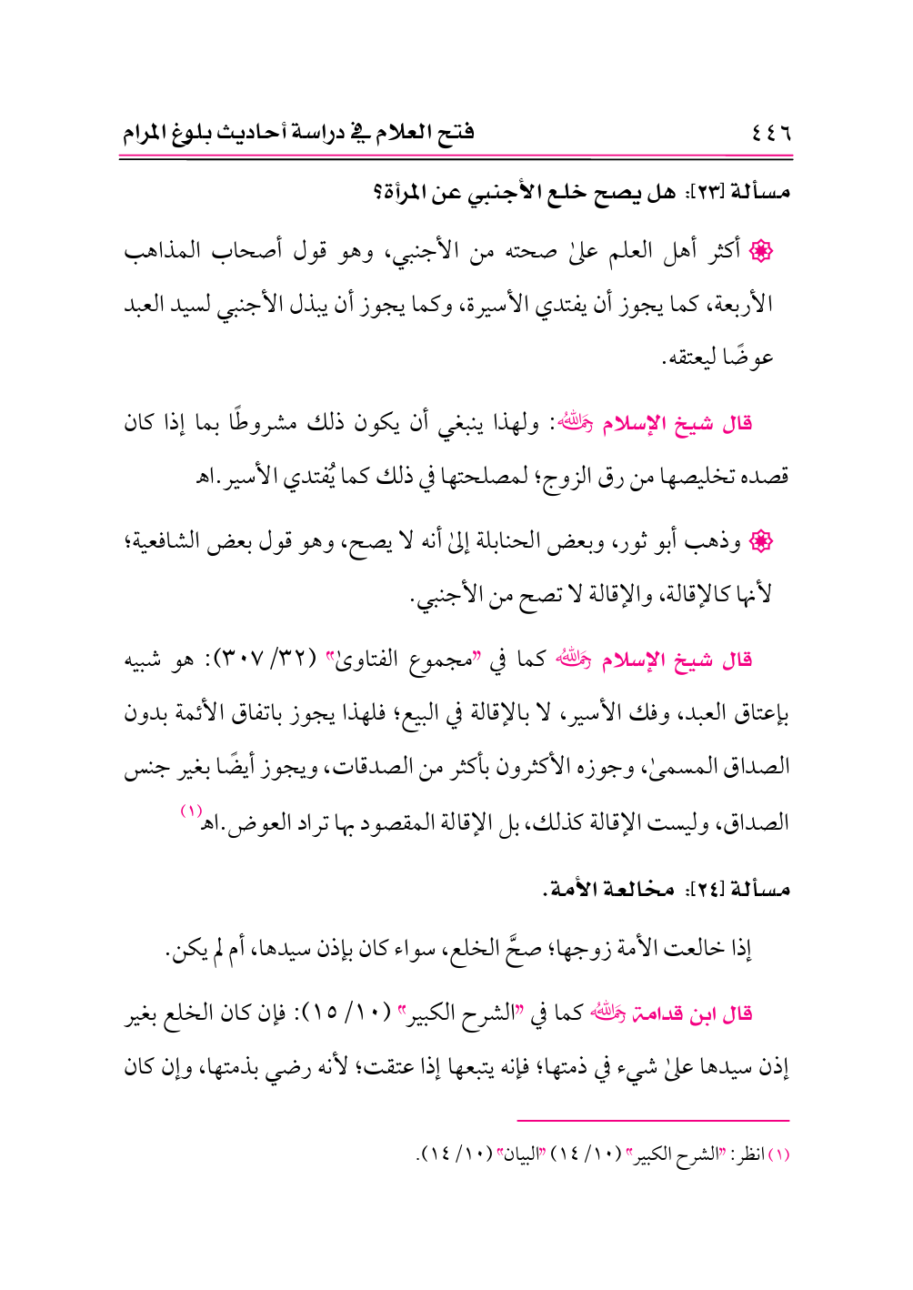 مسألة [٢٤]: مخالعة الأمة.