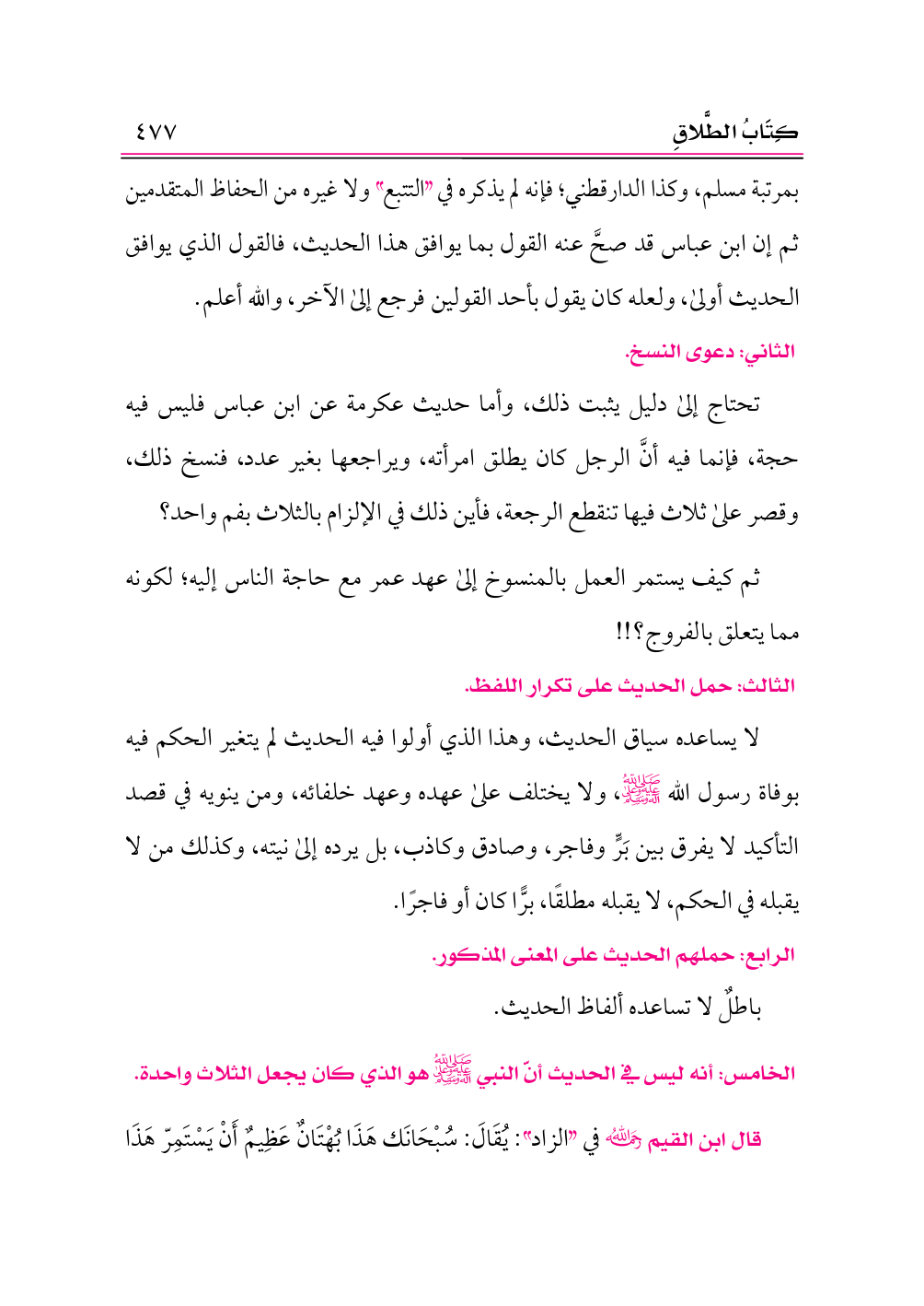 تحتاج إلى دليل يثبت ذلك، وأما حديث عكرمة عن ابن عباس فليس فيه حجة، فإنما فيه أنَّ الرجل كان يطلق امرأته، ويراجعها بغير عدد، فنسخ ذلك، وقصر على ثلاث فيها تنقطع الرجعة، فأين ذلك في الإلزام بالثلاث بفم واحد؟