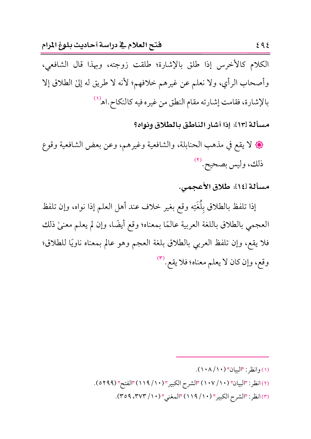 • لا يقع في مذهب الحنابلة، والشافعية وغيرهم، وعن بعض الشافعية وقوع ذلك، وليس بصحيح. (¬٢)