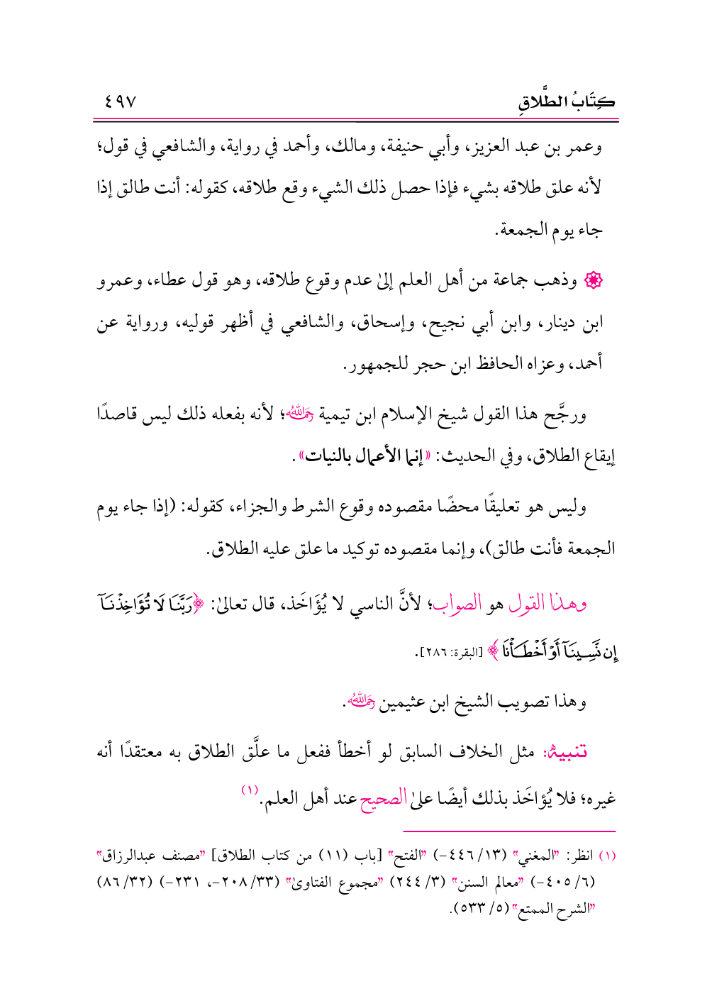 (¬١) انظر: «المغني» (١٣/ ٤٤٦ - ) «الفتح» [باب (١١) من كتاب الطلاق] «مصنف عبدالرزاق» (٦/ ٤٠٥ - ) «معالم السنن» (٣/ ٢٤٤) «مجموع الفتاوى» (٣٣/ ٢٠٨ - ، ٢٣١ - ) (٣٢/ ٨٦) «الشرح الممتع» (٥/ ٥٣٣).