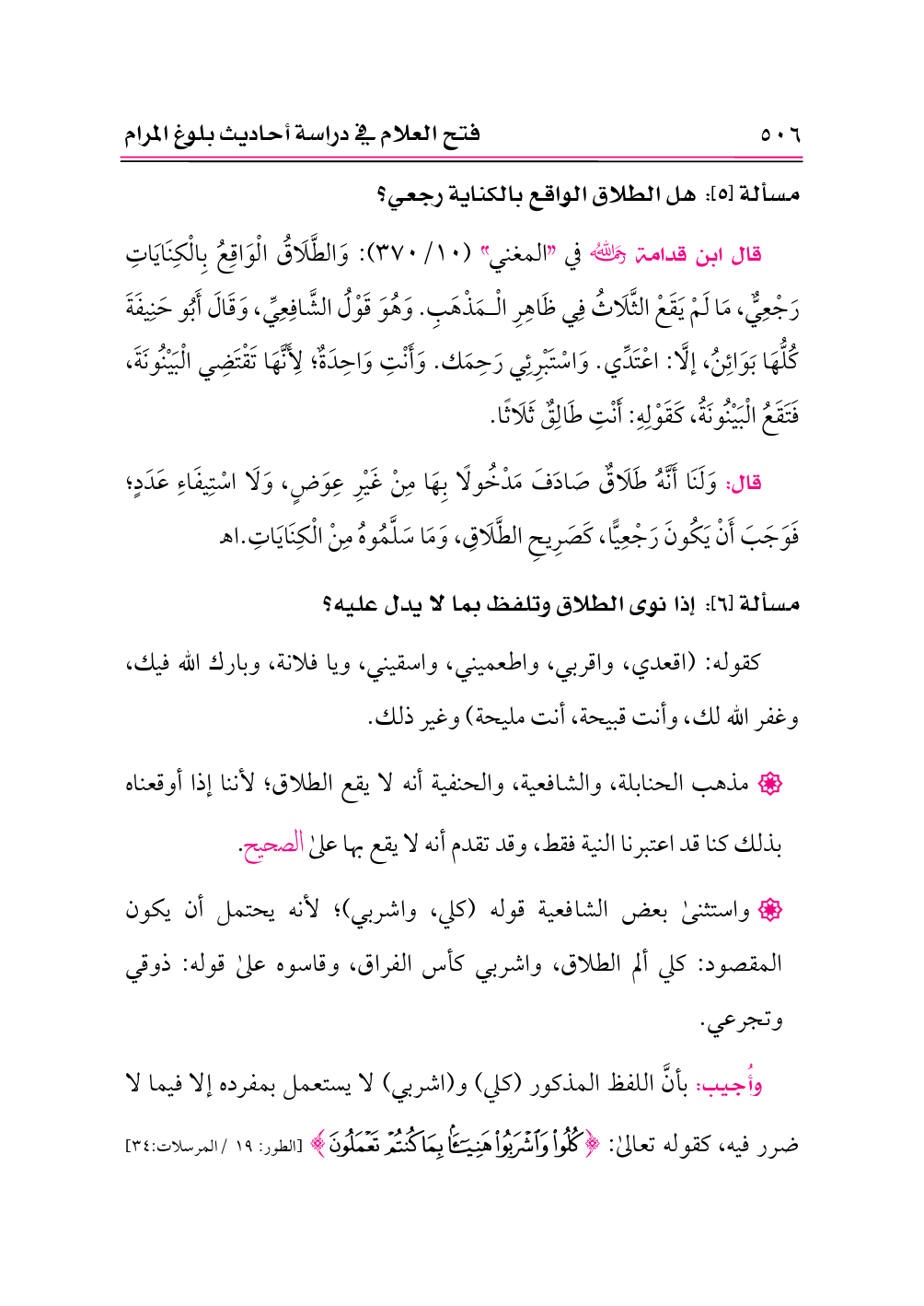 • واستثنى بعض الشافعية قوله (كلي، واشربي)؛ لأنه يحتمل أن يكون المقصود: كلي ألم الطلاق، واشربي كأس الفراق، وقاسوه على قوله: ذوقي وتجرعي.