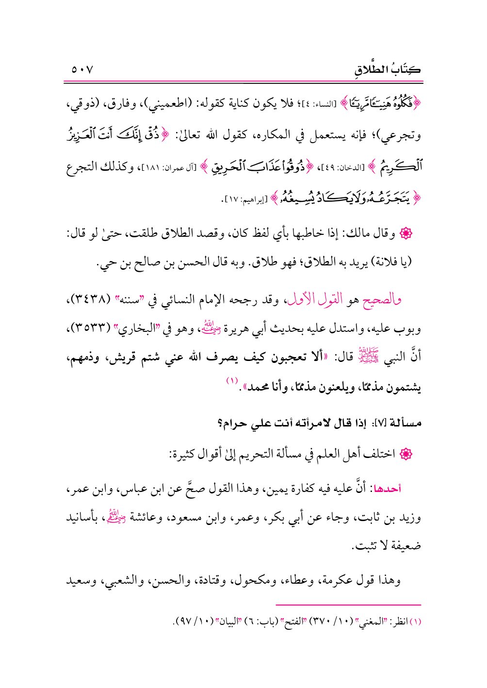 مسألة [٧]: إذا قال لامرأته أنت علي حرام؟