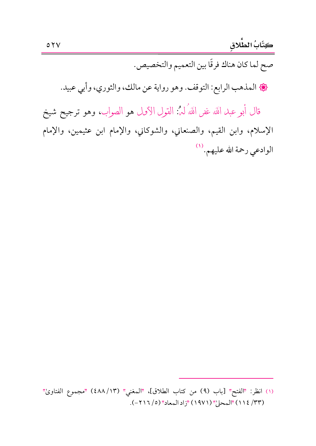 (¬١) انظر: «الفتح» [باب (٩) من كتاب الطلاق]، «المغني» (١٣/ ٤٨٨) «مجموع الفتاوى» (٣٣/ ١١٤) «المحلى» (١٩٧١) «زاد المعاد» (٥/ ٢١٦ - ).