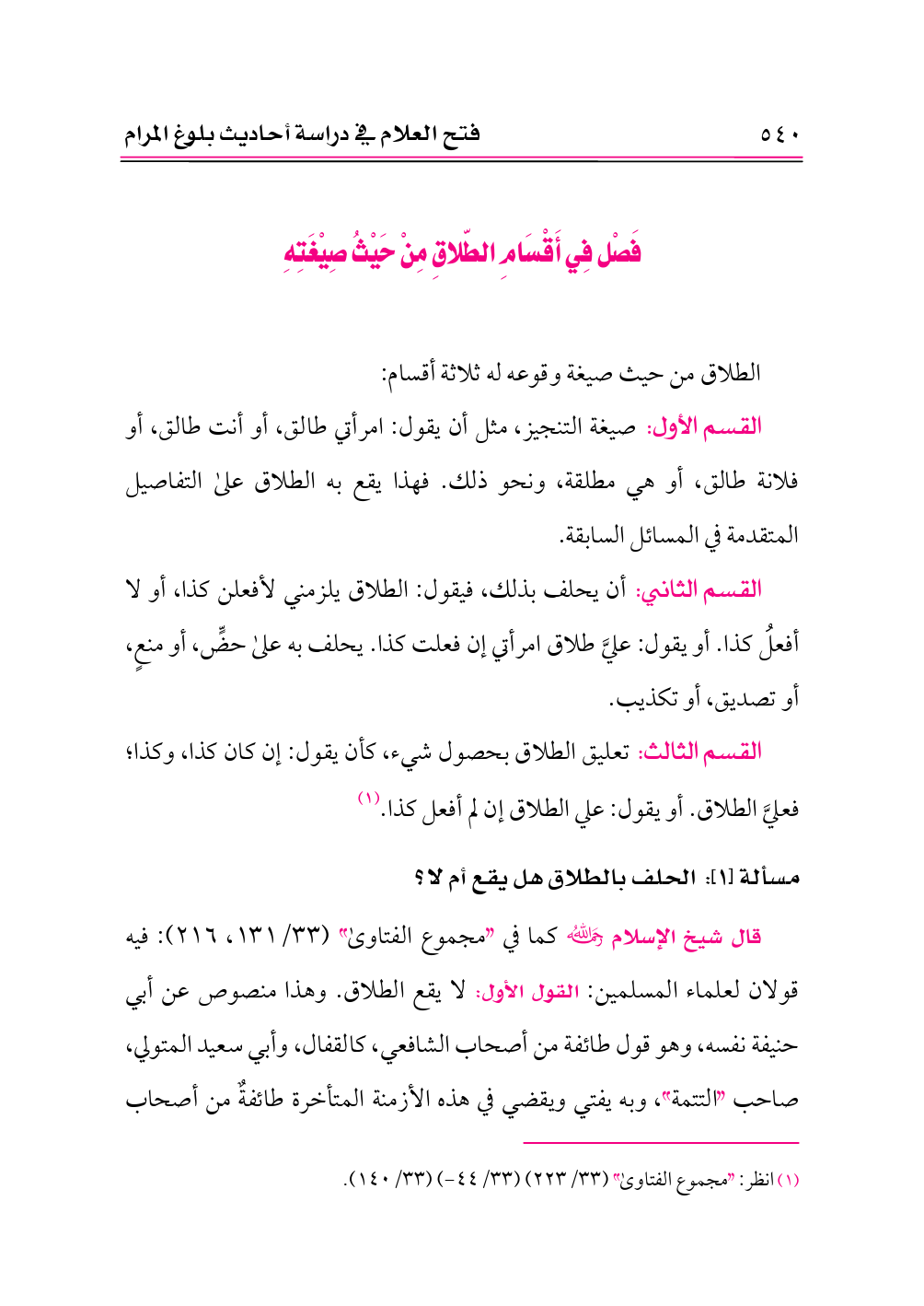 فَصْل فِي أَقْسَامِ الطّلاقِ مِنْ حَيْثُ صِيْغَتِهِ