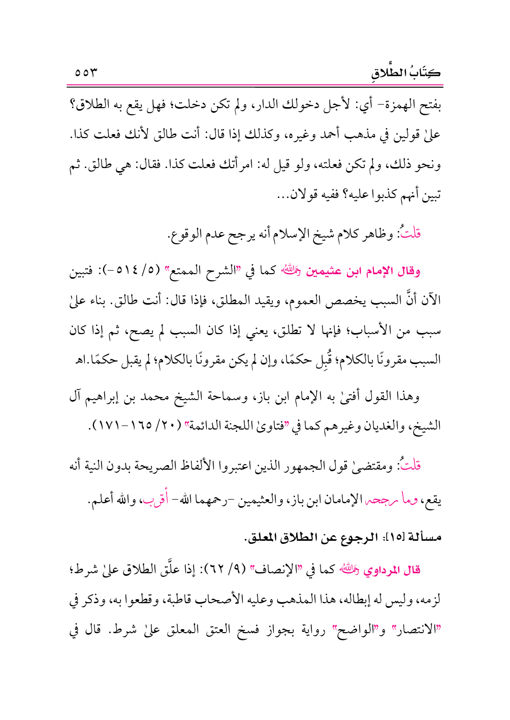 مسألة [١٥]: الرجوع عن الطلاق المعلق.