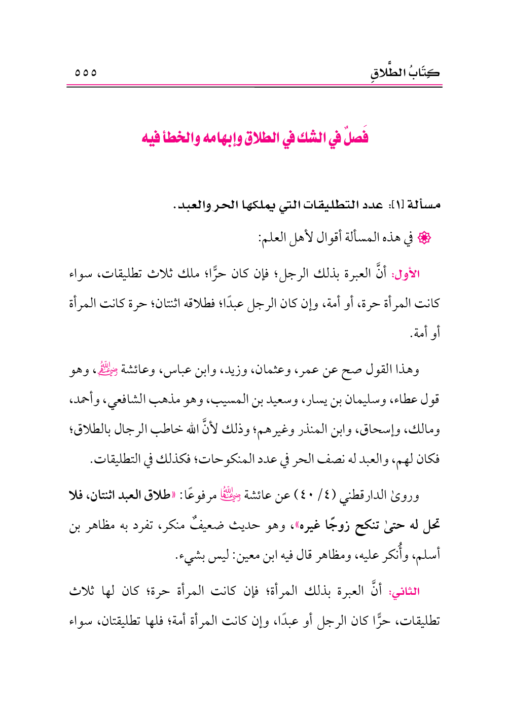 مسألة [١]: عدد التطليقات التي يملكها الحر والعبد.