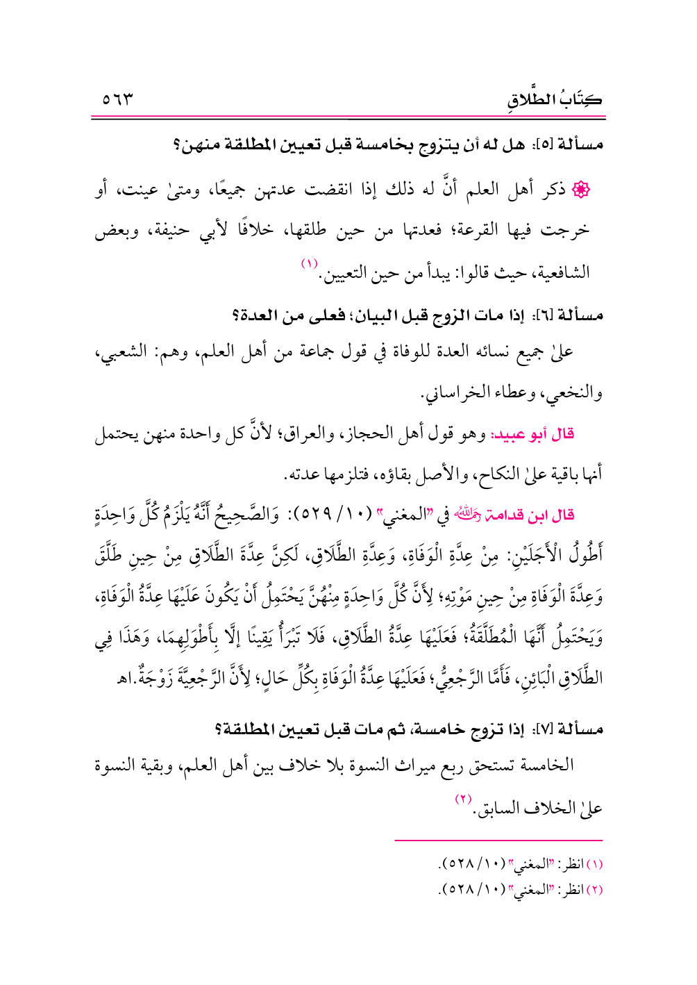 مسألة [٥]: هل له أن يتزوج بخامسة قبل تعيين المطلقة منهن؟