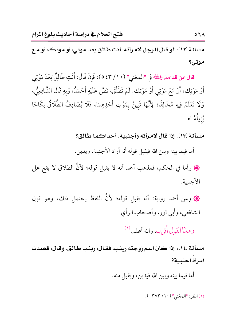 (¬١) انظر: «المغني» (١٠/ ٣٧٣ - ).