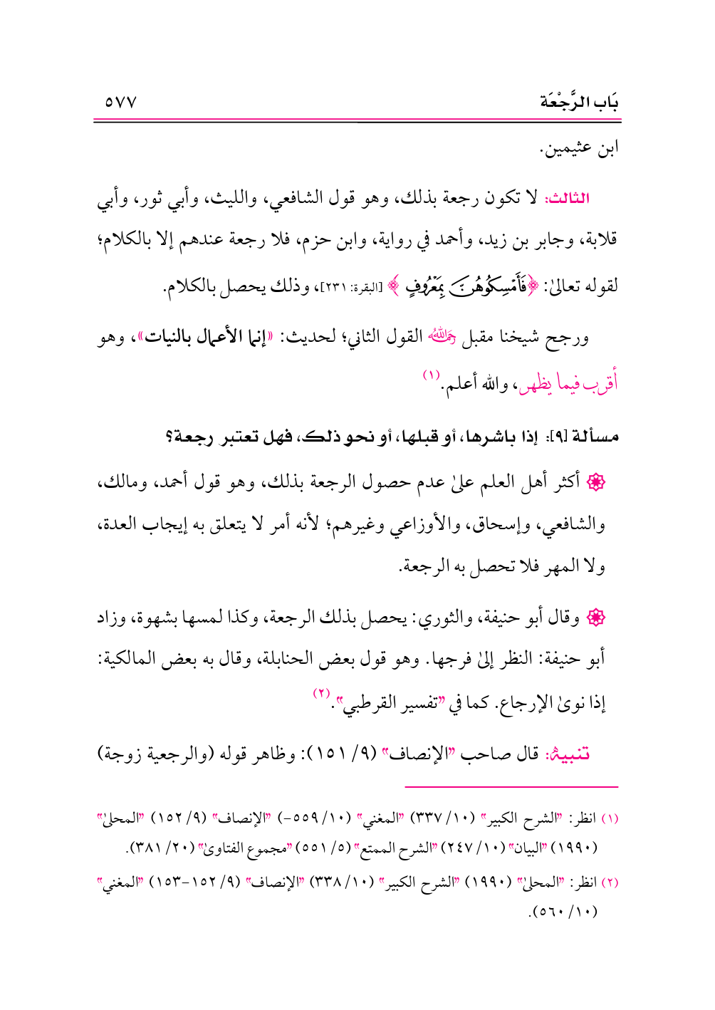 (¬١) انظر: «الشرح الكبير» (١٠/ ٣٣٧) «المغني» (١٠/ ٥٥٩ - ) «الإنصاف» (٩/ ١٥٢) «المحلى» (١٩٩٠) «البيان» (١٠/ ٢٤٧) «الشرح الممتع» (٥/ ٥٥١) «مجموع الفتاوى» (٢٠/ ٣٨١).