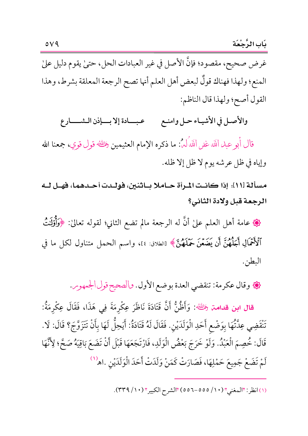 (¬١) انظر: «المغني» (١٠/ ٥٥٥ - ٥٥٦) «الشرح الكبير» (١٠/ ٣٣٩).