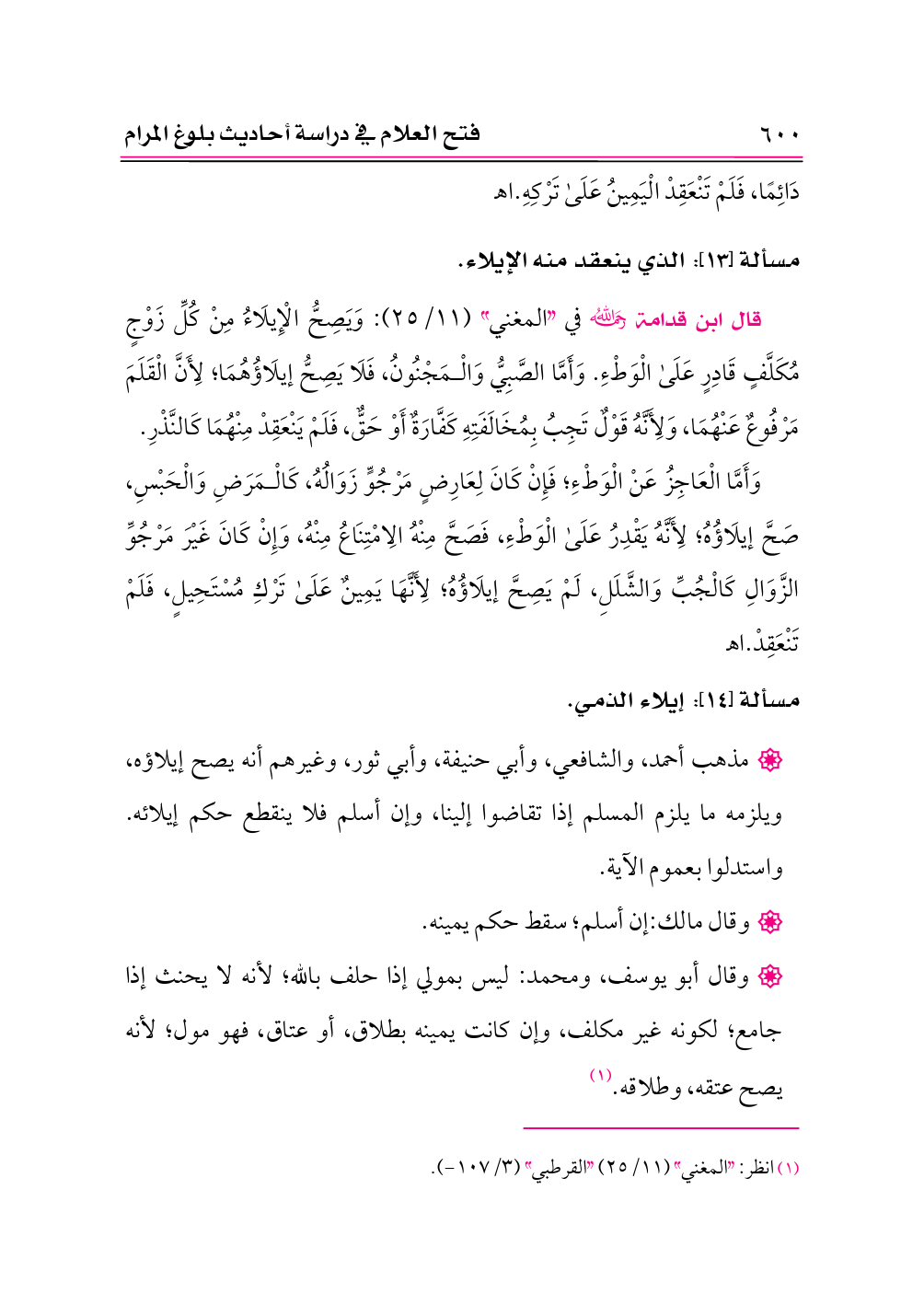 (¬١) انظر: «المغني» (١١/ ٢٥) «القرطبي» (٣/ ١٠٧ - ).