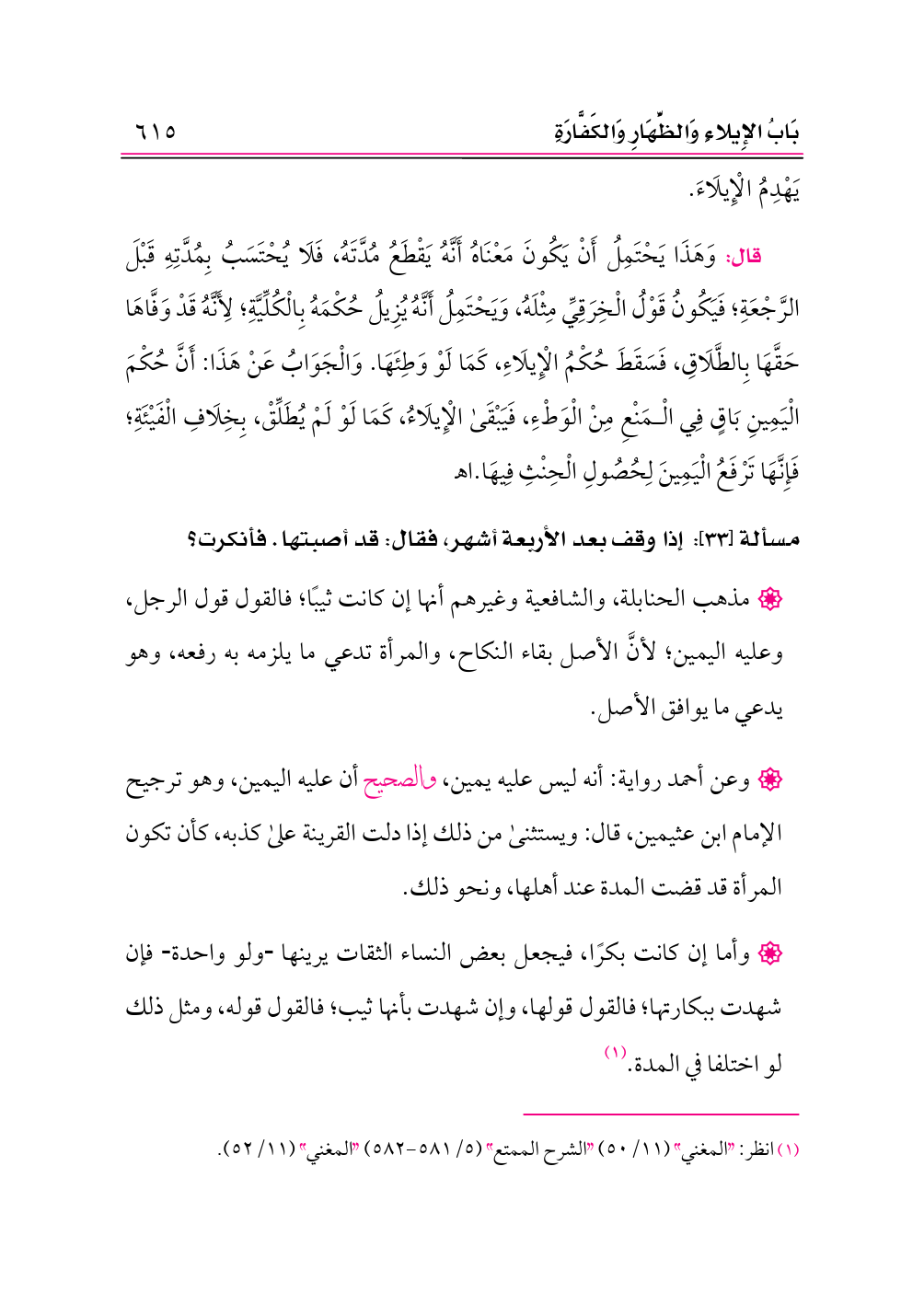 (¬١) انظر: «المغني» (١١/ ٥٠) «الشرح الممتع» (٥/ ٥٨١ - ٥٨٢) «المغني» (١١/ ٥٢).