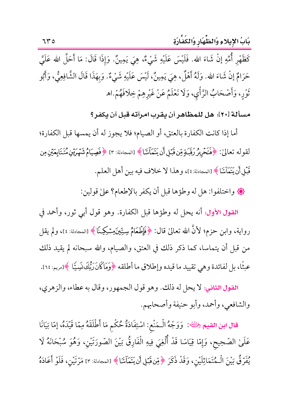 مسألة [٢٠]: هل للمظاهر أن يقرب امرأته قبل أن يكفر؟