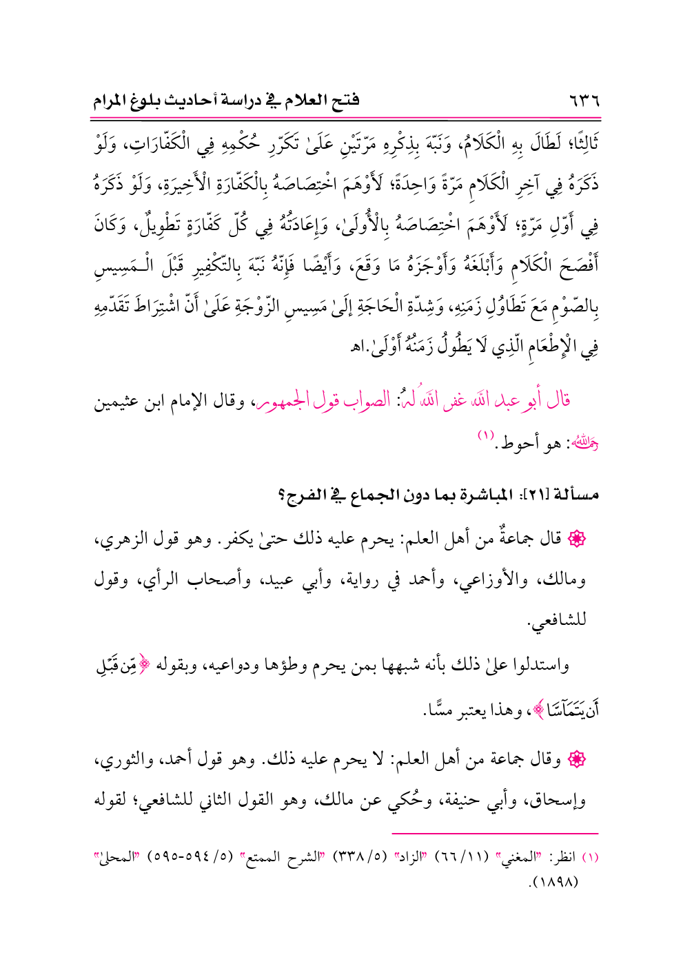 (¬١) انظر: «المغني» (١١/ ٦٦) «الزاد» (٥/ ٣٣٨) «الشرح الممتع» (٥/ ٥٩٤ - ٥٩٥) «المحلى» (١٨٩٨).