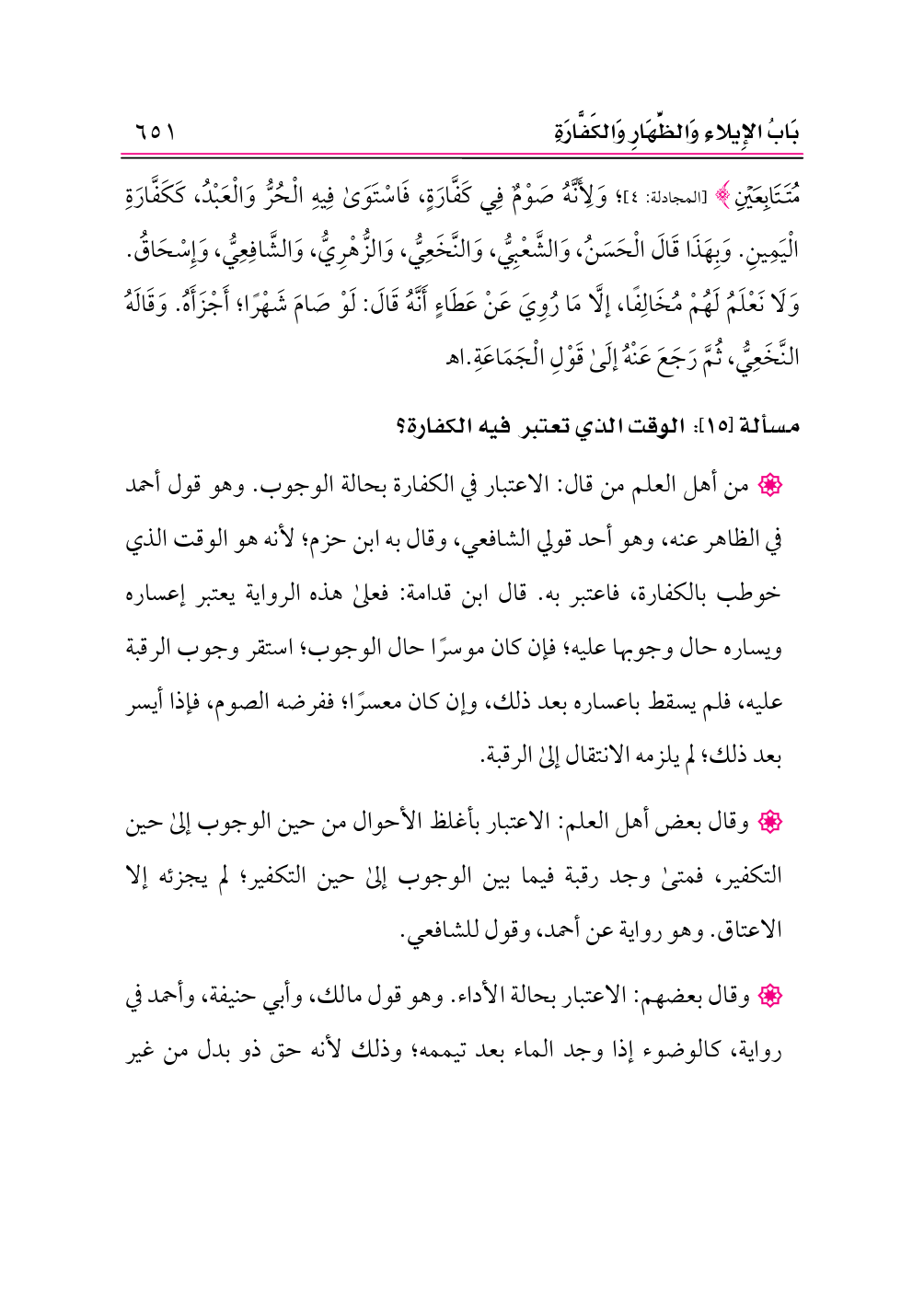 مسألة [١٥]: الوقت الذي تعتبر فيه الكفارة؟