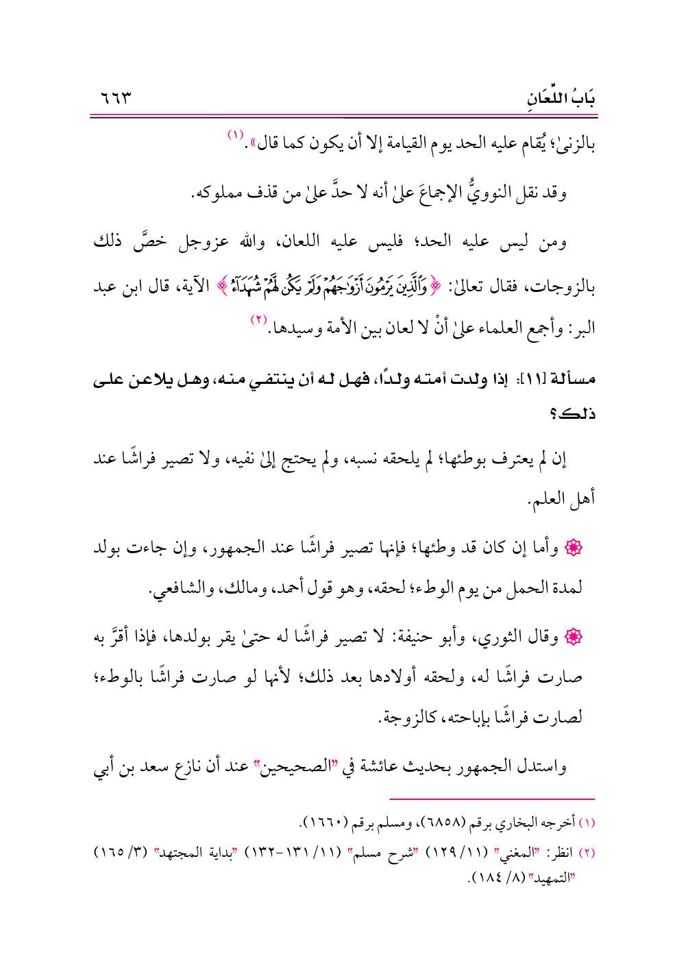 (¬٢) انظر: «المغني» (١١/ ١٢٩) «شرح مسلم» (١١/ ١٣١ - ١٣٢) «بداية المجتهد» (٣/ ١٦٥) «التمهيد» (٨/ ١٨٤).