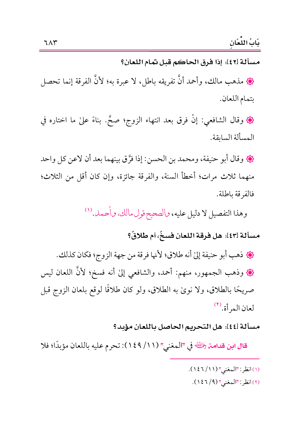 مسألة [٤٣]: هل فرقة اللعان فسخٌ، أم طلاقٌ؟