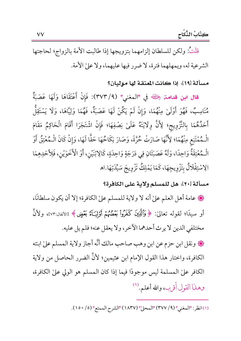 (¬١) انظر: «المغني» (٩/ ٣٧٧) «المحلى» (١٨٣٧) «الشرح الممتع» (٥/ ١٥٠).