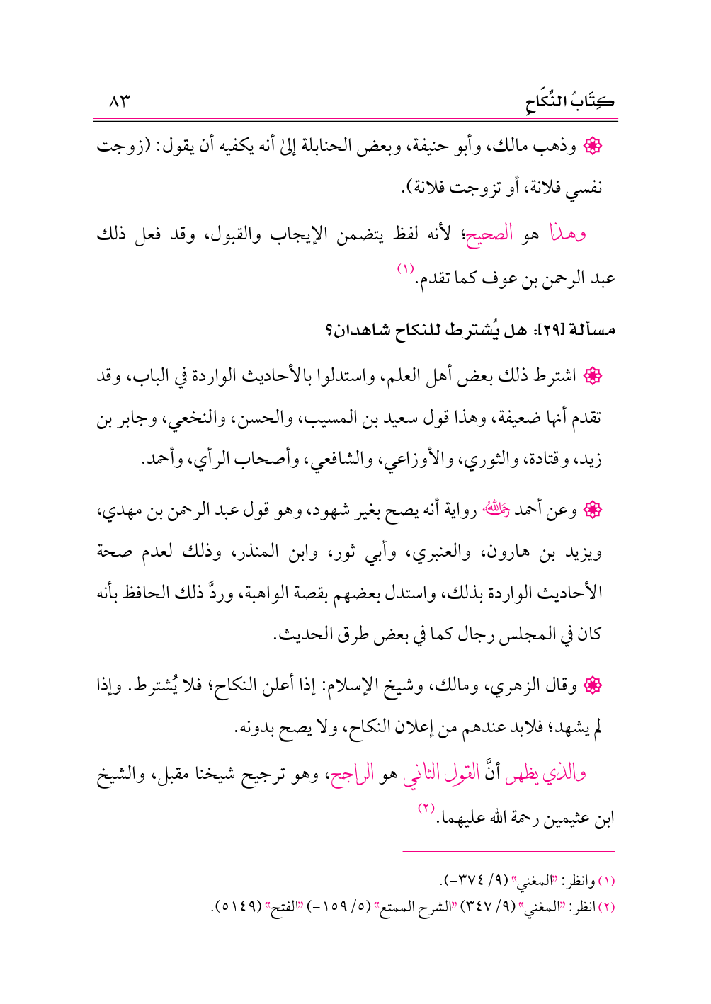 مسألة [٢٩]: هل يُشترط للنكاح شاهدان؟