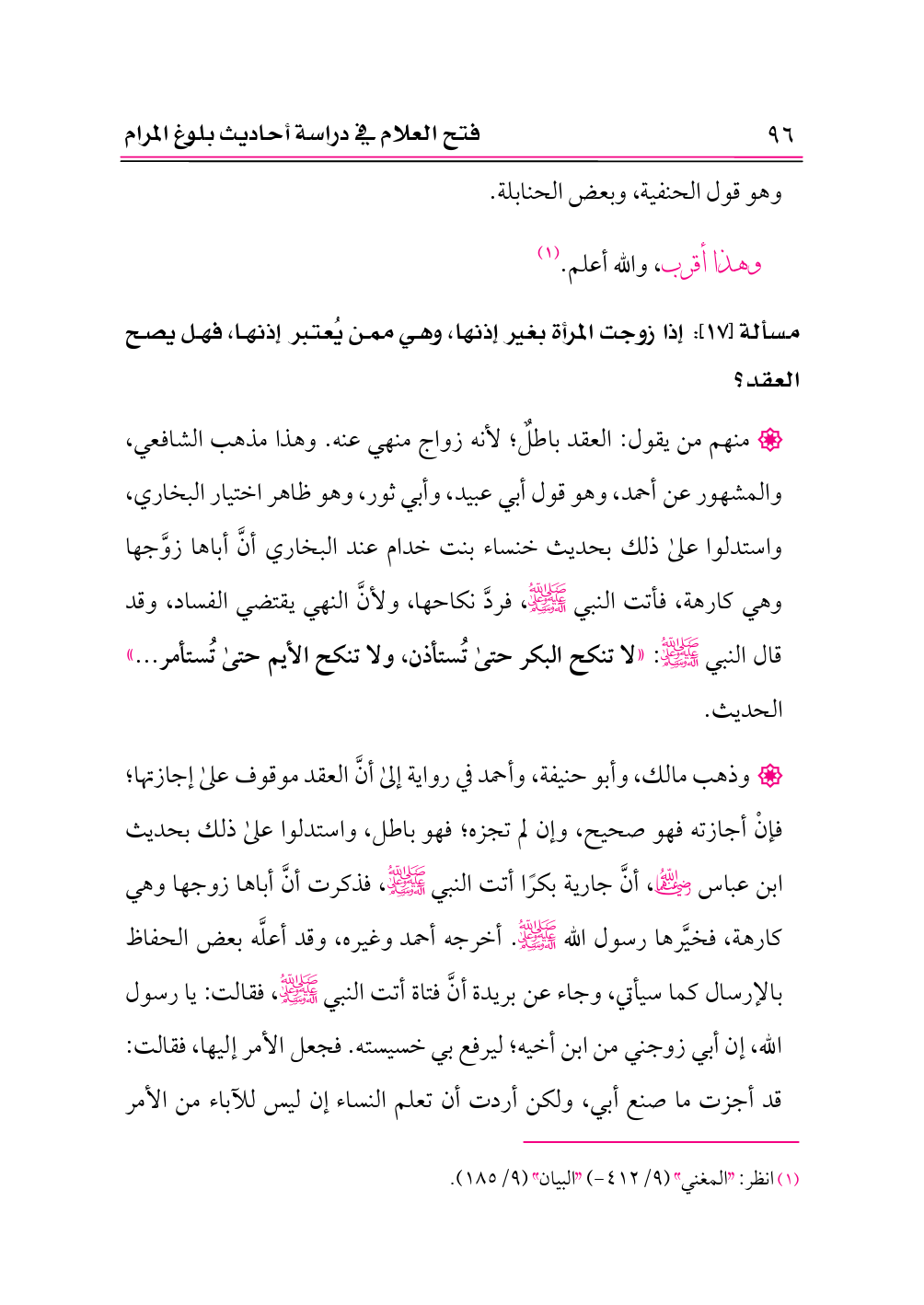 (¬١) انظر: «المغني» (٩/ ٤١٢ - ) «البيان» (٩/ ١٨٥).