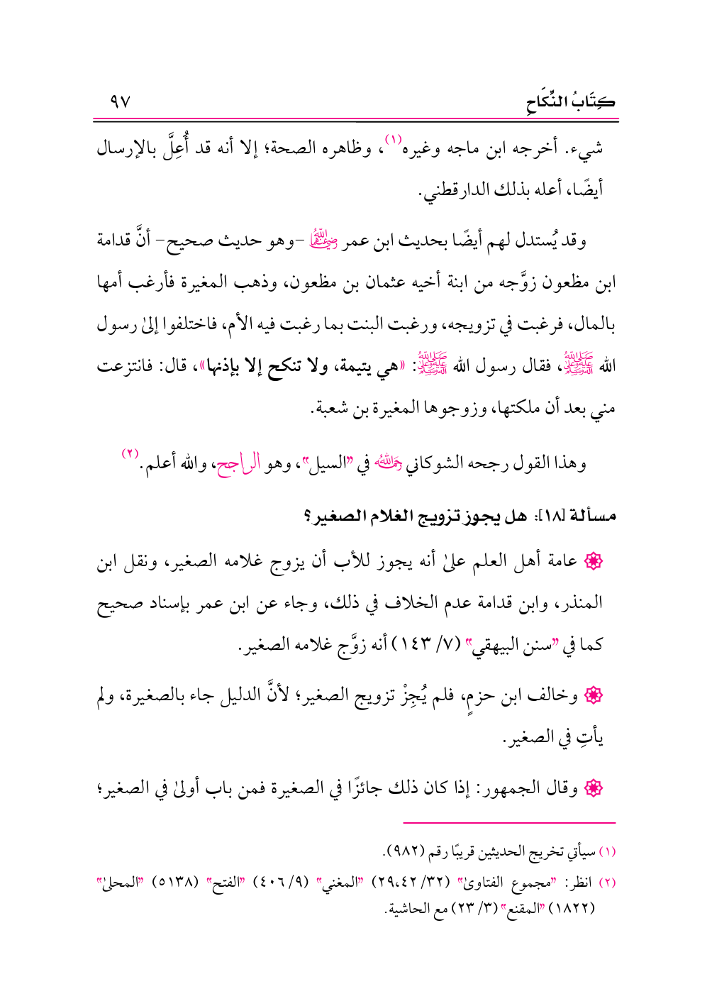 (¬٢) انظر: «مجموع الفتاوى» (٣٢/ ٢٩،٤٢) «المغني» (٩/ ٤٠٦) «الفتح» (٥١٣٨) «المحلى» (١٨٢٢) «المقنع» (٣/ ٢٣) مع الحاشية.