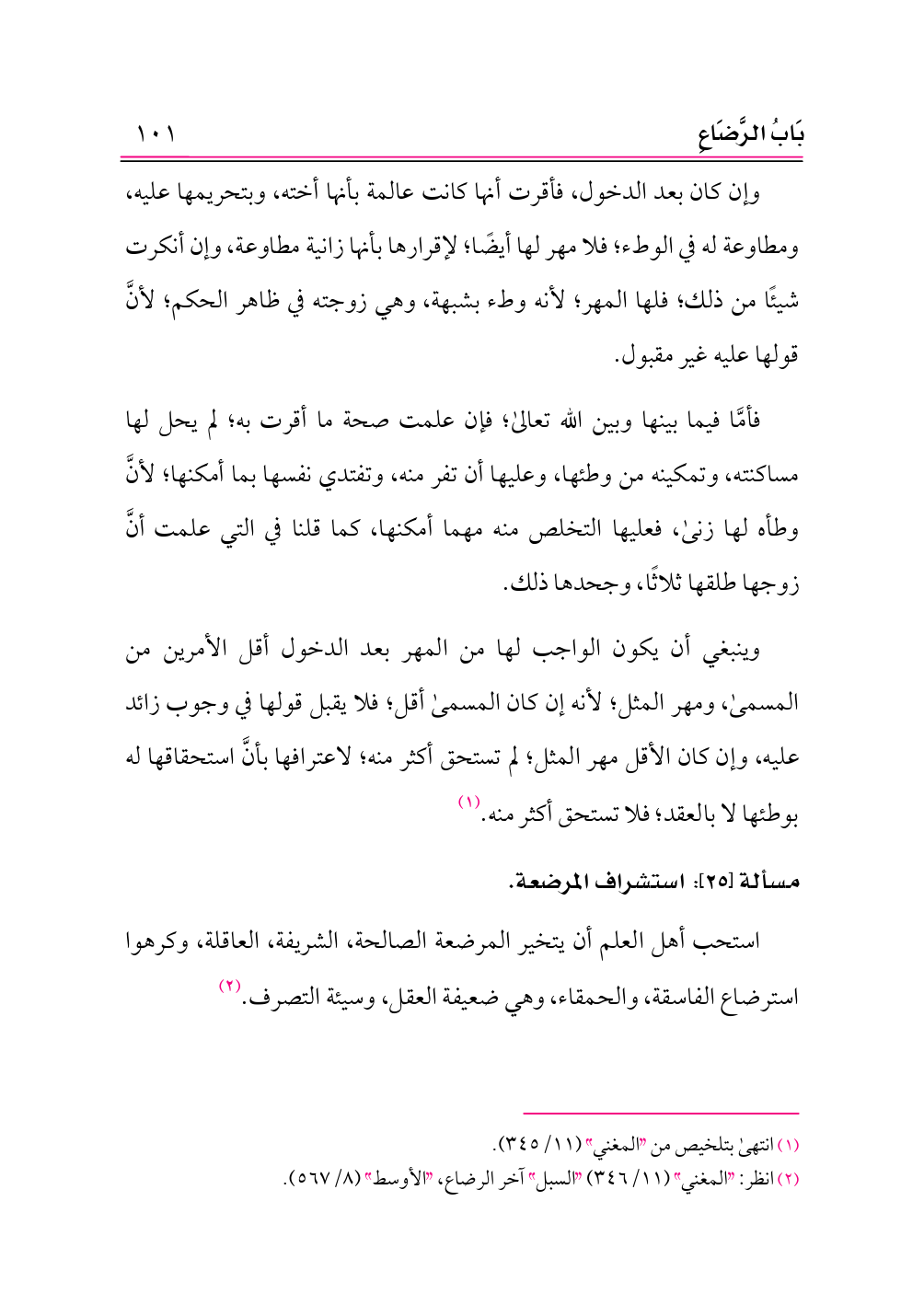 (¬٢) انظر: «المغني» (١١/ ٣٤٦) «السبل» آخر الرضاع، «الأوسط» (٨/ ٥٦٧).