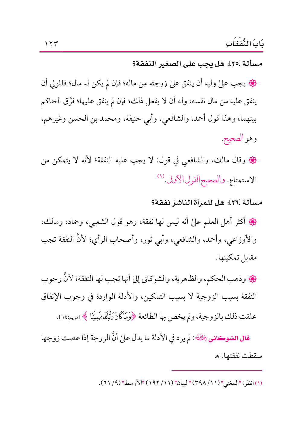 مسألة [٢٥]: هل يجب على الصغير النفقة؟