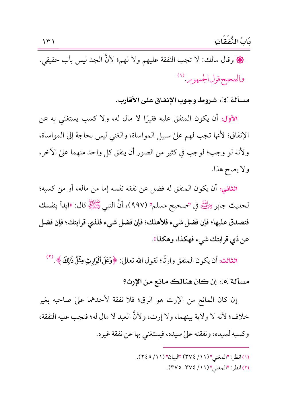 مسألة [٤]: شروط وجوب الإنفاق على الأقارب.