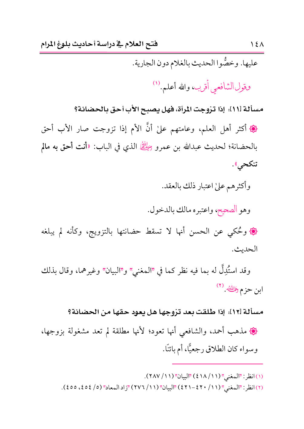 (¬١) انظر: «المغني» (١١/ ٤١٨) «البيان» (١١/ ٢٨٧).