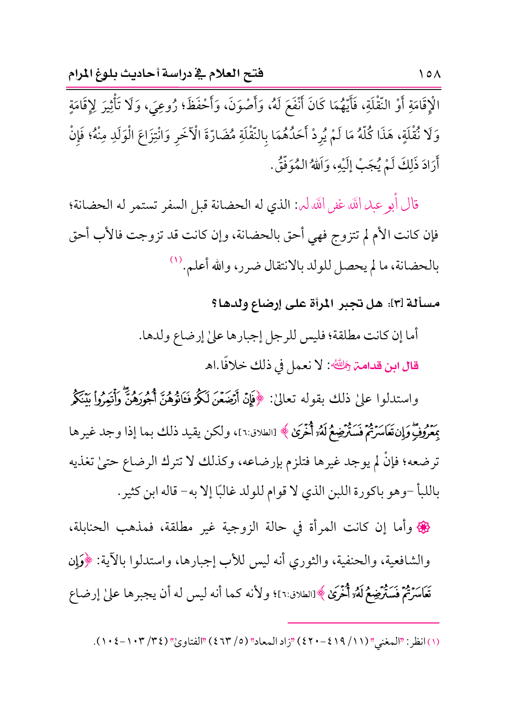 مسألة [٣]: هل تجبر المرأة على إرضاع ولدها؟