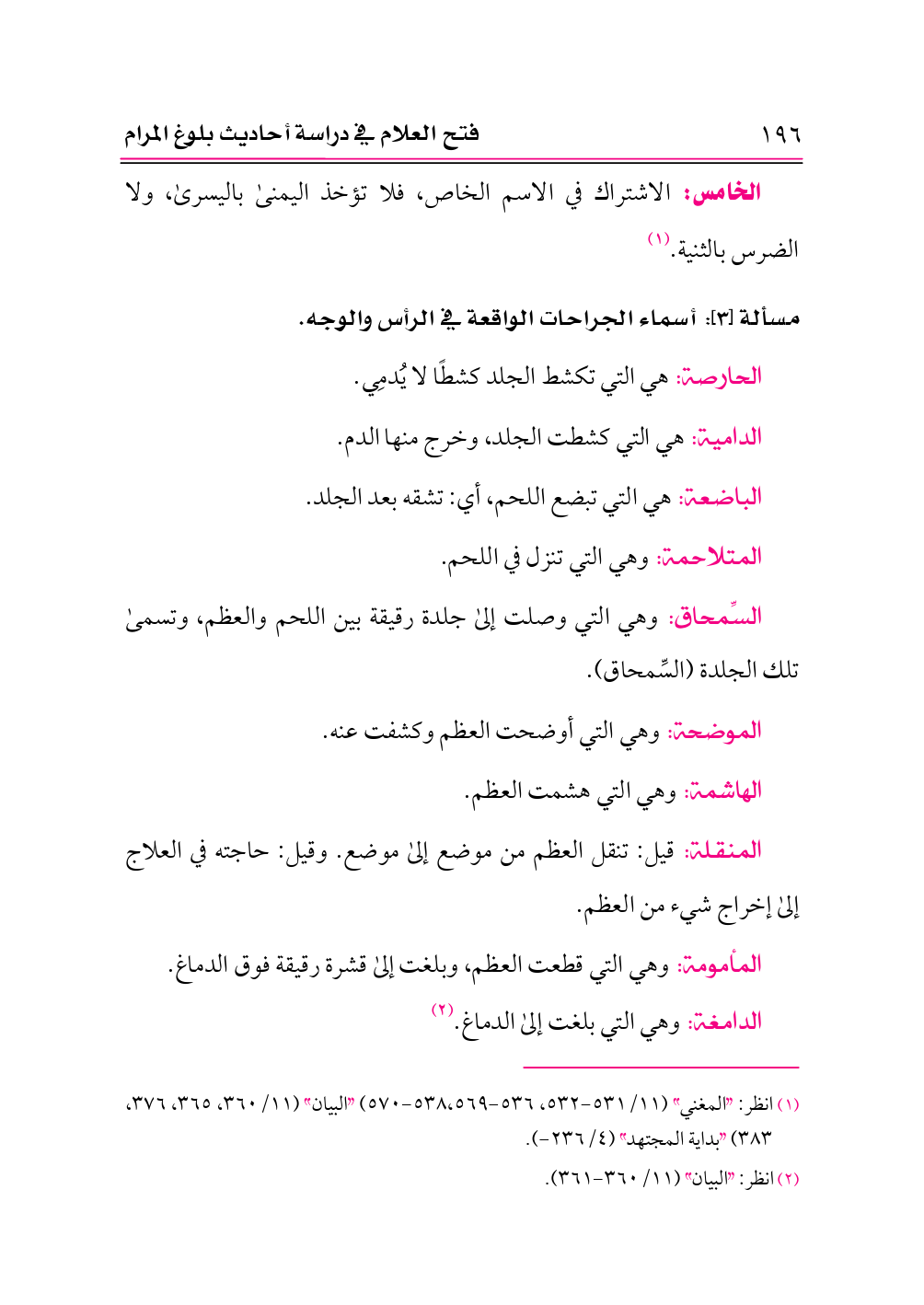 مسألة [٣]: أسماء الجراحات الواقعة في الرأس والوجه.